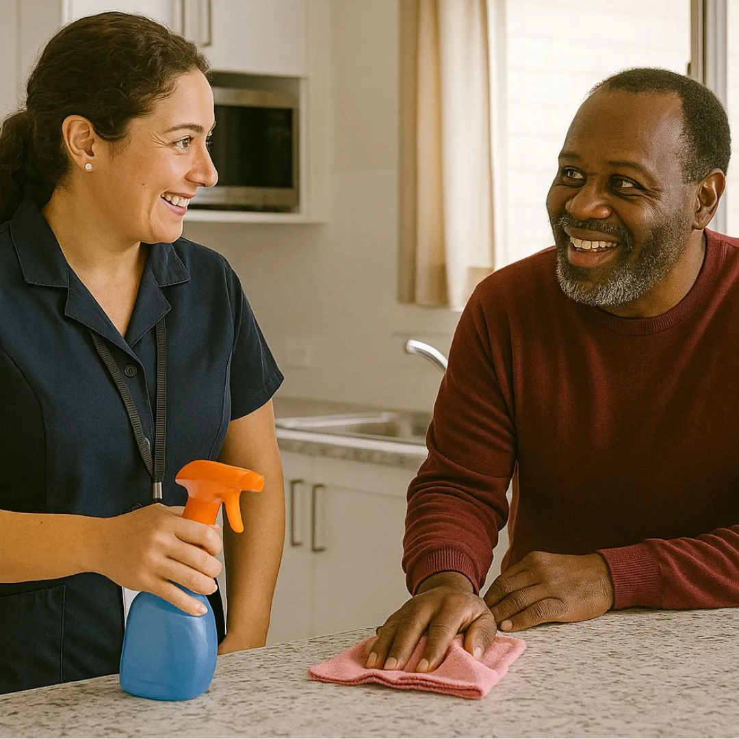 Assistance with daily activities like bathing, grooming, dressing, mobility, cleaning, and meal preparation, supporting independence and comfort at home.
